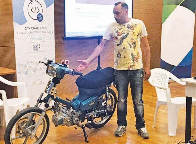 Το… τσικουδοκίνητο μηχανάκι είναι επινόηση του κ. Ηλιάκη, που το παρουσίασε στο City Lab Ηρακλείου, στο πλαίσιο του μεγάλου μαραθωνίου της ΚΕΔΕ, που στόχο έχει να συγκεντρώσει προτάσεις επίλυσης των αστικών προβλημάτων μέσω νέων τεχνολογιών. Ο ίδιος και το «παπάκι» του κέρδισαν τις εντυπώσεις και θεωρείται σχεδόν σίγουρο ότι θα εξασφαλίσει το εισιτήριο για να συμμετάσχει στον πανελλήνιο διαγωνισμό που διοργανώνει το Ιδρυμα «Σταύρος Νιάρχος».
