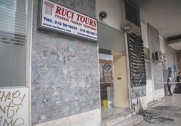 Σοβαρές υλικές ζημιές προκλήθηκαν στο τουριστικό γραφείο ενός Βορειοηπειρώτη στην οδό Δηλιγιάννη στην Ομόνοια (φωτό), όπου άγνωστοι εξαπέλυσαν επίθεση με μολότοφ τα ξημερώματα της Τρίτης. Οι αστυνομικοί που ανέλαβαν τις έρευνες εκτιμούν ότι ο εμπρησμός ήταν αντίδραση για τη δολοφονία του Κωνσταντίνου Κατσίφα από την αλβανική αστυνομία.