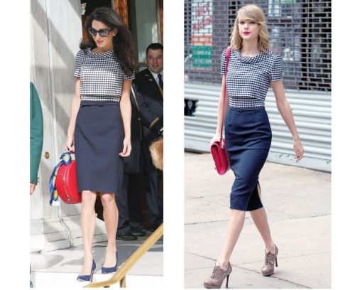 Και να ήταν μόνο αυτή η εμφάνιση; Ολοι είδαμε την κομψή εμφάνιση της Αλαμουντίν κατά την αναχώρησή της από την Αθήνα. Το μπλε φόρεμα φέρει επίσης την υπογραφή του Ντε λα Ρέντα και -τι έκπληξη!- νωρίτερα το είχε φορέσει η Σουίφτ. Σε αυτήν την περίπτωση και οι δύο κράτησαν κόκκινες τσάντες (η Αμάλ τύπου βαλιτσάκι και η Τέιλορ κρεμαστό φάκελο).
