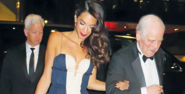 ❱❱ Αγκαζέ με τον πεθερό της Νικ Κλούνεϊ κατέφθασε η Αμάλ για τη βράβευσή της από την Ενωση Ανταποκριτών των Ηνωμένων Εθνών στη Νέα ΥόρκηΟ θεσμός, που τιμά κάθε χρόνο την καλύτερη δημοσιογραφική κάλυψη από τα Ηνωμένα Εθνη και τα πρακτορεία του ΟΗΕ, απένειμε στην Αμάλ Κλούνεϊ το βραβείο του Διεθνούς Πολίτη της Χρονιάς. Η τιμώμενη επέλεξε για τη βραδιά μακριά τουαλέτα σε γαλανόλευκες αποχρώσεις, του οίκου J. Mendel.