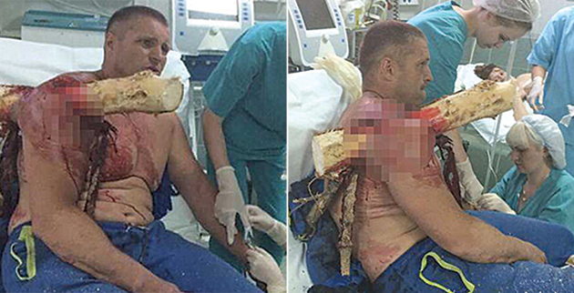 Ο 36χρονος Ιβάν Κρασούσκι μεταφέρθηκε με το κλαδί που ήταν καρφωμένο στην ωμοπλάτη στο νοσοκομείο, όπου υποβλήθηκε σε επέμβαση για να του αφαιρεθεί.