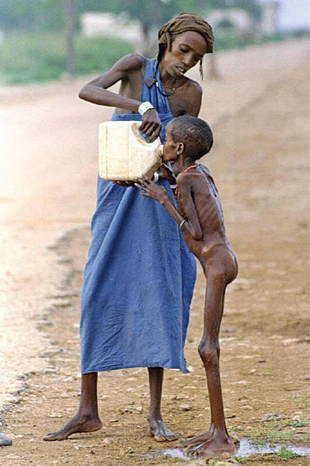 Μάνα δίνει νερό στο σκελετωμένο παιδί της σε στρατόπεδο προσφύγων της Σομαλίας το 1992