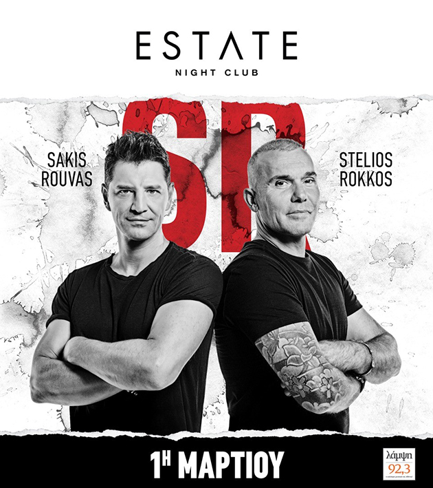 Όλα είναι έτοιμα στο Estate. Σάκης και Στέλιος ξεκινούν την Παρασκευή τις εμφανίσεις τους στην Αθήνα και το μόνο σίγουρο είναι ότι θα ξεσηκώσουν και το αθηναϊκό κοινό…… όπως έκαναν τους προηγούμενους μήνες στη Θεσσαλονίκη. Όσοι τους έχουν δει επί σκηνής, έχουν καταλάβει ότι οι δυο τους έχουν δέσει σε ένα εκρηκτικό δίδυμο, που ήρθε για να βάλει φωτιά στις νύχτες μας. Οπότε, μην αντιστέκεστε στα ζόρικα βράδια, μας υπόσχονται Ρουβάς και Ρόκκος…