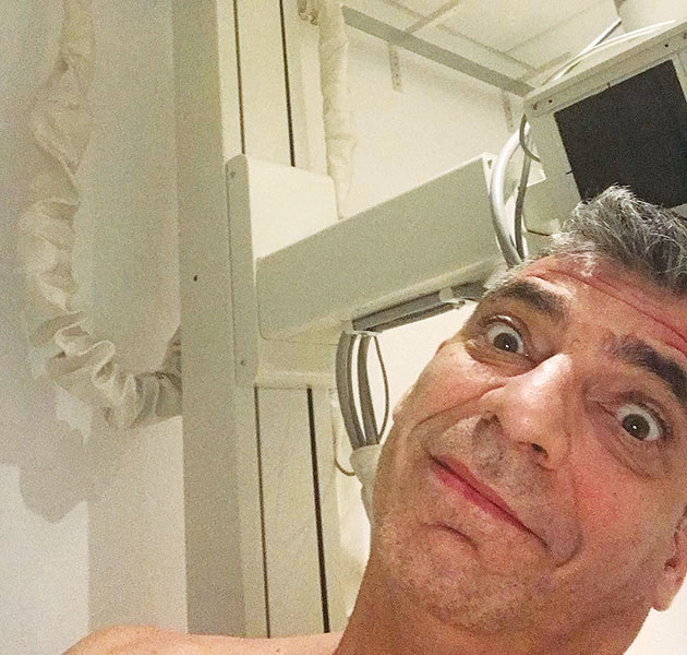 Την περιπέτειά του γνωστοποίησε ο ίδιος μέσω Ιnstagram, κοινοποιώντας μία φωτογραφία του λίγο προτού κάνει ακτινογραφία. «Εντάξει, θα γίνει η Ανάσταση, αλλά, καλού κακού, κάνουμε και μια ακτινογραφία… Ολα καλά. Ιωση είναι, θα περάσει» σημείωσε με χιούμορ.