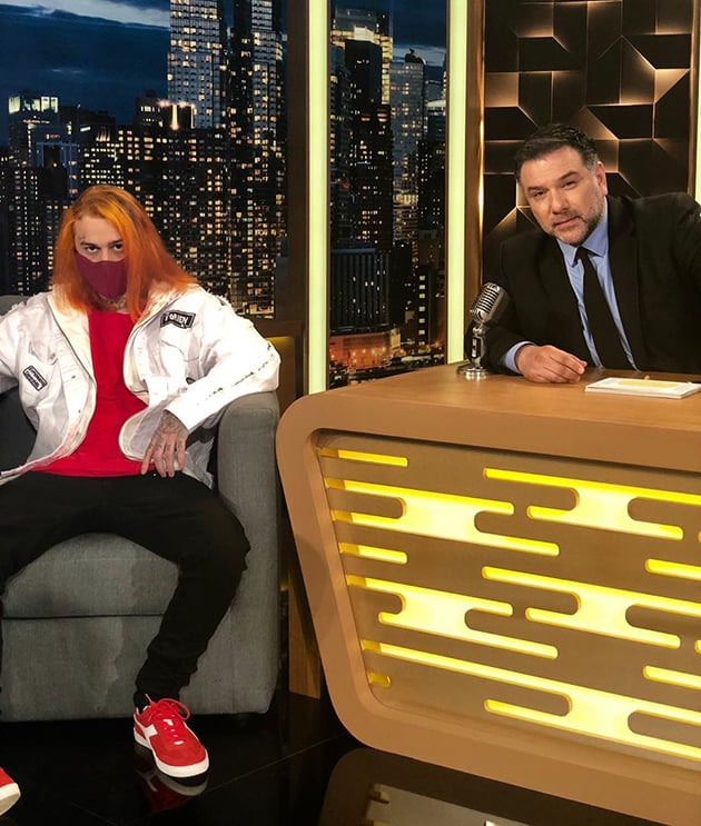 Ο αμφιλεγόμενος καλλιτέχνης, αλβανικής καταγωγής, με τα καροτί μαλλιά και το τατουάζ Πίκατσου στον λαιμό, εμφανίστηκε στην εκπομπή του Γρηγόρη Αρναούτογλου «The 2night Show» φορώντας μάσκα, καθώς, όπως είπε, «είμαι αρρώστια, μη σας κολλήσω», και με ύφος χιλίων -και βάλε- καρδιναλίων αναφέρθηκε με ακραία σχόλια στον παρουσιαστή του «Ράδιο Αρβύλα».