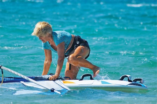 Το ‘πε και το ‘κανε η 81χρονη σέρφερ, η οποία είχε βάλει στοίχημα με τον εαυτό της να διανύσει με την ιστιοσανίδα της την απόσταση των 18 (!) μιλίων που χωρίζει τη Σκάλα Κεφαλλονιάς από την Κυλλήνη!