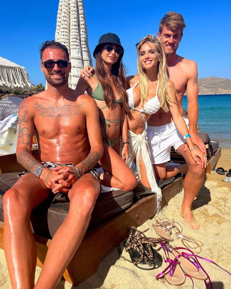 Ο ύψους 1,94 μ. γκολκίπερ και ο 28χρονος κεντρικός αμυντικός, όπως είναι φυσικό δεν προσγειώθηκαν «ντουέτο» στον δημοφιλή προορισμό, άλλα έχοντας δίπλα τους τις συντρόφους τους! Και τι συντρόφους! Σκέτη κόλαση! Από τη μια ο πορτιέρο έχει την καλλονή Giulia Ortaggi, και από την άλλη ο «κέρβερος» της άμυνας την εντυπωσιακή ξανθιά δημοσιογράφο Michella Persico. Τα δύο ζευγάρια απολαμβάνουν τόσο τις παραλίες του νησιού, με τα κορίτσια να προκαλούν κύματα ενθουσιασμού στους λουόμενους με τις εμφανίσεις τους, όσο και τη νυχτερινή ζωή!
