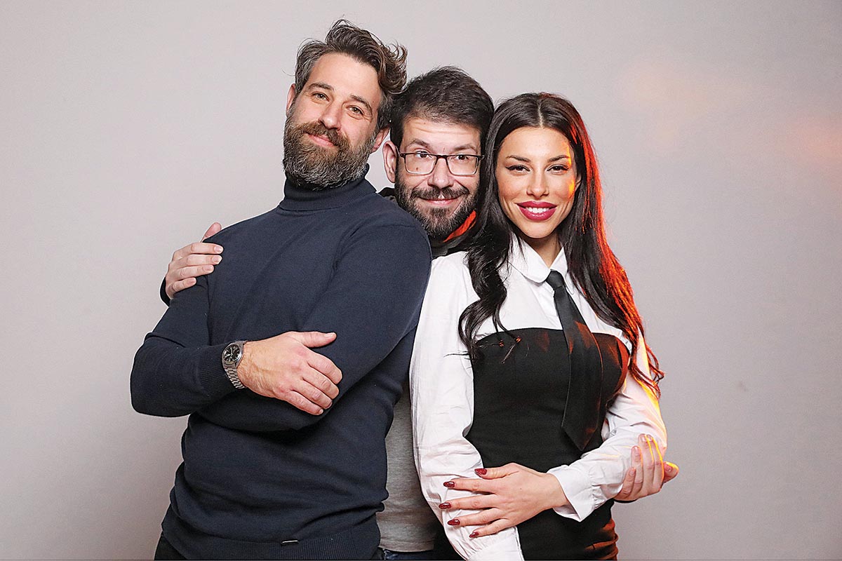 Ο σκηνοθέτης Θοδωρής Βουρνάς ανάμεσα στον Ευθύμη Γεωργόπουλο και στην Ειρήνη Στεριανού