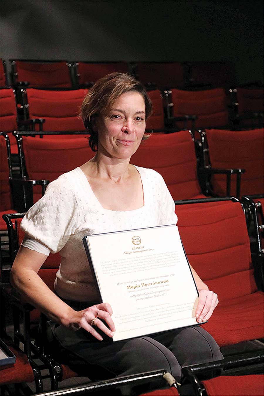 Σε μια συγκινητική εκδήλωση στο Θέατρο Τέχνης, η Μαρία Πρωτόπαππα τιμήθηκε προχθές με το πρώτο βραβείο «Μάγια Λυμπεροπούλου». Το βραβείο θεσπίστηκε φέτος και θα απονέμεται ανά διετία σε γυναίκες δημιουργούς που παράγουν σημαντικό έργο στο θέατρο μέσα από δύο τουλάχιστον από τις θέσεις που υπηρέτησε η Μάγια Λυμπεροπούλου κατά τη διάρκεια της καλλιτεχνικής διαδρομής της: ηθοποιός, μεταφράστρια, δραματουργός, σκηνοθέτις, δασκάλα υποκριτικής, καλλιτεχνική διευθύντρια πολιτιστικού οργανισμού.