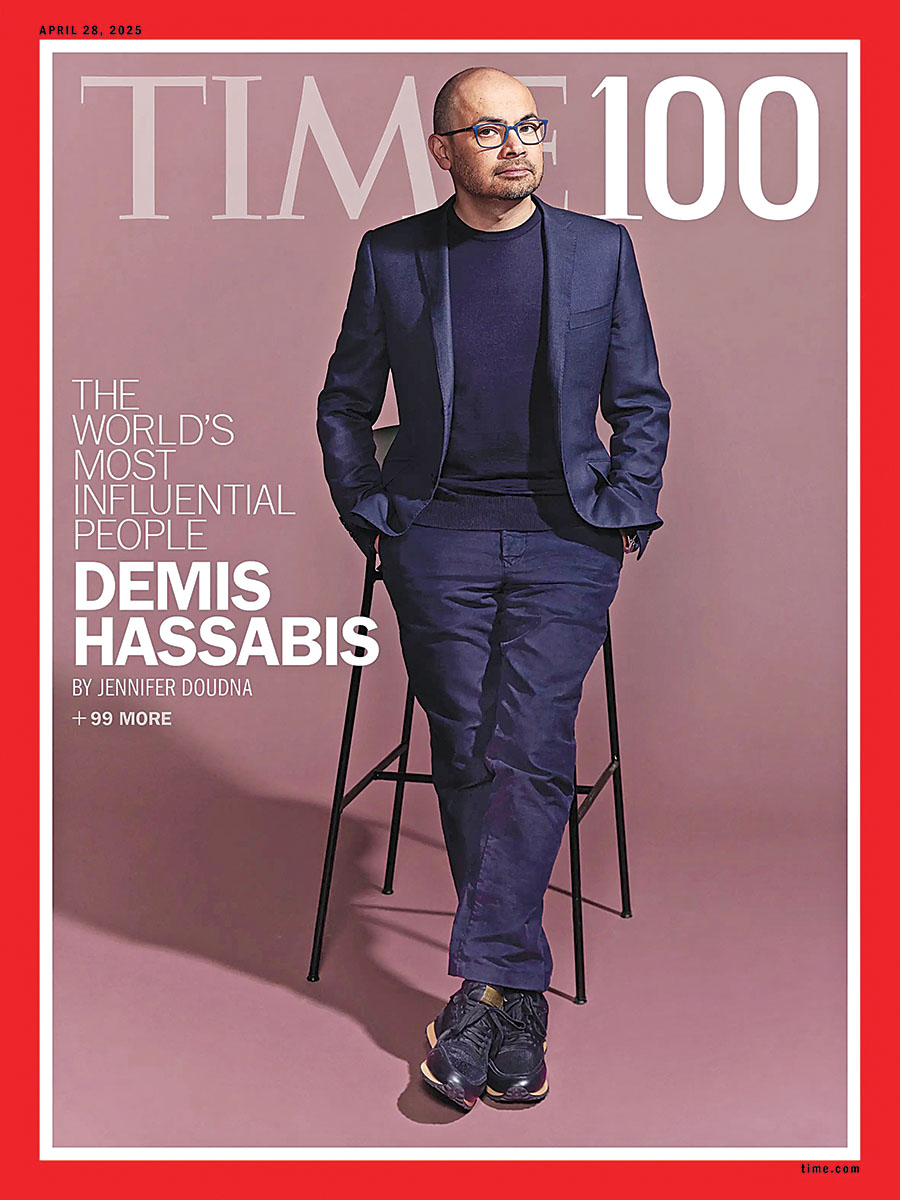 Ο Ντέμης Χασάμπης, που γεννήθηκε στο Λονδίνο από Ελληνοκύπριο πατέρα και μητέρα με κινεζική καταγωγή, επιλέχθηκε μάλιστα για ένα από τα πέντε εξώφυλλα του περιοδικού, ενώ τα υπόλοιπα κοσμούν η ηθοποιός Ντέμι Μουρ, ο τραγουδιστής Εντ Σίραν, η πρώην τενίστρια Σερένα Γουίλαμς και ο ράπερ Σνουπ Ντογκ. Το «TIME» αναφέρει ότι πέρυσι ο Χασάμπης πήρε το Βραβείο Νόμπελ στη χημεία, ενώ η δουλειά του ως CEO της εταιρίας Google DeepMind, που αναπτύσσει Τεχνητή Νοημοσύνη, έχει φέρει επανάσταση στην ιατρική και τη βιολογία.