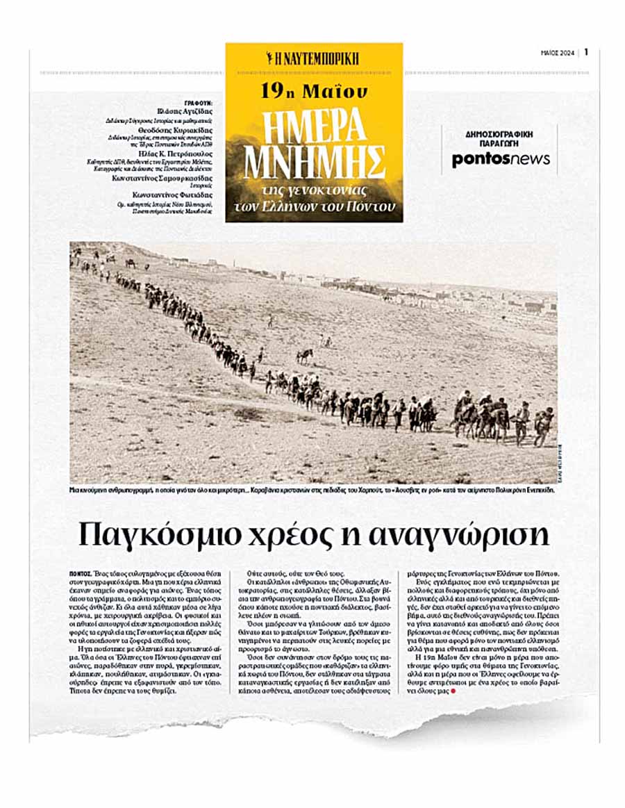 Ως εκ τούτου, το επίτευγμα της «Ναυτεμπορικής» στον 26ο διαγωνισμό European Newspaper Award δεν έγκειται μόνο στο γεγονός της διπλής διάκρισης, και μάλιστα ως μοναδική ελληνική εφημερίδα που απέσπασε βραβείο, αλλά και στη διάδοση της εθνικής και πανανθρώπινης αυτής υπόθεσης της Γενοκτονίας σε ευρωπαϊκό επίπεδο. Οι συντελεστές του πολυσέλιδου ενθέτου «19η Μαΐου: Ημέρα Μνήμης της Γενοκτονίας των Ελλήνων του Πόντου» έχουν λοιπόν έναν επιπλέον λόγο να αισθάνονται υπερήφανοι. Το δε γράφημα με τον Ατλαντα, με τη χαρακτηριστική… λακωνικότητα των αρχαίων συμβολισμών, δεν μπορούσε παρά να ενθουσιάσει τους ειδήμονες του σχεδιασμού.
