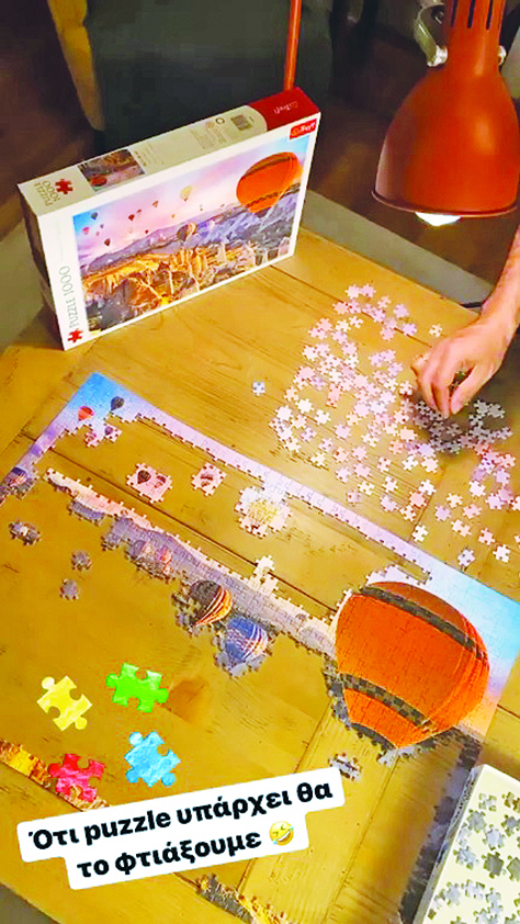 Ο γνωστός σεφ δίνει… ρεσιτάλ στην κουζίνα τους, ενώ η μικρή και η μαμά της ενώνουν εκατοντάδες κομματάκια παζλ. Ενίοτε το ζευγάρι κάνει μικρές, κοντινές εξορμήσεις στη φύση για χάρη του σκύλου του, ενώ καταφέρνουν όλοι μαζί να ακολουθούν πιστά τις οδηγίες του υπουργείου Υγείας, μένοντας στο σπίτι.