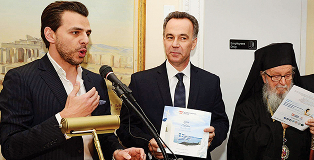 Ο δρ Αποστολόπουλος παρέδωσε ιδιοχείρως τις δύο πρώτες κάρτες του προγράμματος στον Αρχιεπίσκοπο Αμερικής, μακαριότατο Δημήτριο, και τον γενικό πρόξενο της Ελλάδας στη Νέα Υόρκη Κωνσταντίνο Κούτρα.