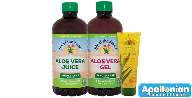 Από τη σειρά βιολογικής Aloe vera της Lily of the Desert επιλέγουμε το χυμό ολόκληρου φύλλου και το gel ολόκληρου φύλλου. Το gel είναι συμπύκνωμα χυμού και είναι πιο πλούσιο σε πολυσακχαρίτες, τα ενεργά συστατικά της Αλόης.