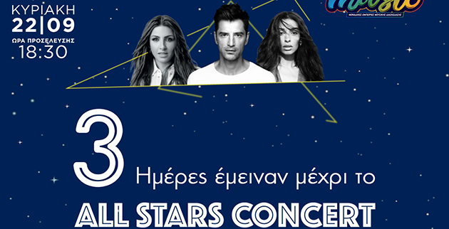 Οι πόρτες για το κοινό θα ανοίξουν στις 18:30. Τα εισιτήρια για το All Stars Concert κοστίζουν 5 ευρώ και η προπώληση πραγματοποιείται μέσω ticketmaster.