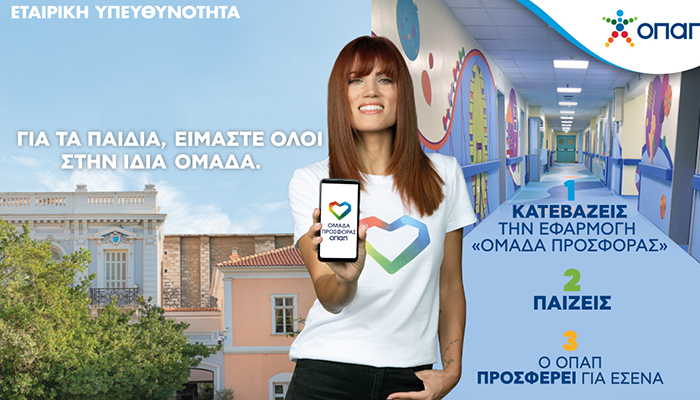 Κατεβάζοντας δωρεάν την εφαρμογή «Ομάδα Προσφοράς» στο κινητό ή το tablet μας, συμμετέχουμε σε δοκιμασίες και συγκεντρώνουμε πόντους, οι οποίοι μετατρέπονται από τον ΟΠΑΠ σε επένδυση για τη συνέχιση της ανακαίνισης στα δύο μεγαλύτερα παιδιατρικά νοσοκομεία της χώρας.