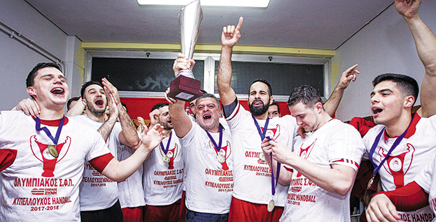 Πρώτη κούπα και στο χάντμπολ ο Ολυμπιακός. Οι «ερυθρόλευκοι» στην πρώτη χρονιά του τμήματος χάντμπολ κατάφεραν να σηκώσουν το Κύπελλο Ελλάδας, καθώς επικράτησαν χθες με 26-22 στο κλειστό της Γλυφάδας του Δούκα, στον τελικό του φάιναλ φορ.Οι Πειραιώτες, που είχαν κορυφαίο τον τερματοφύλακά τους Κώστα Τσιλιμπάρη, ο οποίος κατέβασε τα «ρολά» (αναδείχθηκε MVP), κατάφεραν να ελέγξουν από την αρχή τον ρυθμό του παιχνιδιού, ωστόσο ο Δούκας αντέδρασε. Οι δύο ομάδες συνέχισαν να πηγαίνουν κοντά στο σκορ μέχρι το 26΄, όπου με ένα ξέσπασμά του ο Ολυμπιακός πήρε μια διαφορά την οποία και διατήρησε μέχρι την ανάπαυλα του ημιχρόνου (13-10). Στην επανάληψη, όμως, το σκηνικό άλλαξε.