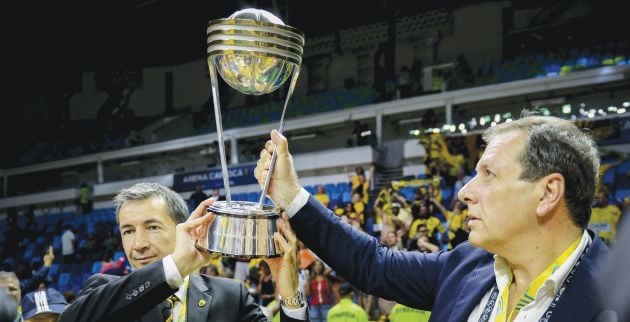 Οι Κιτρινόμαυροι πανηγύρισαν με την ψυχή τους και χορεύοντας, τι άλλο, σάμπα, αυτήν την επιτυχία τους μετά το ματς, με κεντρικό πρόσωπο τον Λούκα Μπάνκι. Ο Ιταλός τεχνικός κέρδισε τις εντυπώσεις με την κίνησή του 4 δευτερόλεπτα πριν από το τέλος να πάρει τάιμ άουτ για να αφιερώσει μπροστά σε όλη την ομάδα την κούπα στον Ντράγκαν Σάκοτα, ενώ αργότερα, στη συνέντευξη Τύπου, αποθέωσε τον «Σάλε» και τον Μάκη Αγγελόπουλο. «Είναι μία φοβερή μέρα για εμάς. Πριν από ένα χρόνο η ΑΕΚ πήρε το Κύπελλο Ελλάδας, μετά πήρε το Champions League και τώρα κλείσαμε έναν κύκλο με αυτό το απίστευτο τρόπαιο», είπε ξεκινώντας τις δηλώσεις του και πρόσθεσε: «Θέλω να ευχαριστήσω όσους μας επέτρεψαν με τις επιδόσεις τους πέρυσι να είμαστε εδώ. Πρώτα τον ιδιοκτήτη της ομάδας, Μάκη Αγγελόπουλο, τον οραματιστή της ΑΕΚ ο οποίος πήρε την ομάδα πριν από πέντε χρόνια γλιτώνοντάς την από την πτώχευση, αλλά και τον Σάκοτα, τον προπονητή που είχε δώσει στην ΑΕΚ όλους τους τίτλους της την τελευταία 20ετία».