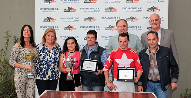 (Από αριστερά προς δεξιά): Ο επιχειρησιακός διευθυντής της ΙΠΠΟΔΡΟΜΙΕΣ Α.Ε. κος Κώστας Αλεξόπουλος, ο προπονητής του ΜΠΟΜΠΣΕΛ ΜΠΕΫ κος Νίκος Καλογερόπουλος, ο αναβάτης κος Λοΐζος Ανδρέου, ο αντιπρόεδρος του ΔΣ της Φιλίππου Ενώσεως της Ελλάδος κος Γιώργος Παρθένης, ο ιδιοκτήτης του ΜΠΟΜΠΣΕΛ ΜΠΕΫ κος Γιώργος Μαλαδάκης με τον γιό του, ο διευθυντής Τεχνικών Υπηρεσιών της ΙΠΠΟΔΡΟΜΙΕΣ Α.Ε. κος Γιώργος Αγγελόπουλος, ο διευθυντής οικονομικών της ΙΠΠΟΔΡΟΜΙΕΣ Α.Ε κος Γιώργος Σκούρας και ο project manager της ΙΠΠΟΔΡΟΜΙΕΣ Α.Ε. κος Βύρωνας Κακλόπουλος.