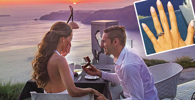 Κατά τη διάρκειά τους, λοιπόν, ο Κοζέρ, με φόντο την εκπληκτική θέα της Καλντέρας και το ηλιοβασίλεμα, ζήτησε από την καλή του να ζήσουν μαζί το υπόλοιπο της ζωής τους.
