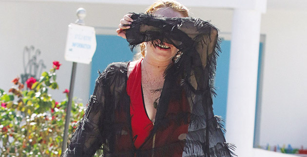 Ο φωτογράφος μας συνάντησε τη Λίντσεϊ καθ’ οδόν για την παραλία, με τη σταρ του Χόλιγουντ και πρώην παιδί-θαύμα του θεάματος να του χαρίζει μεν ένα όμορφο χαμόγελο, στη συνέχεια όμως να κρύβει το πρόσωπό της, μάλλον εν είδει αστείου. Φορώντας κόκκινο ολόσωμο μαγιό και μαύρο φόρεμα παραλίας -έμοιαζε με ρόμπα-, έδειχνε ήρεμη και ξεκούραστη, πράγμα που σημαίνει πως το κλίμα της Μυκόνου τής πάει πολύ. Οσο για το πότε θα αναχωρήσει; Κανείς δεν ξέρει!