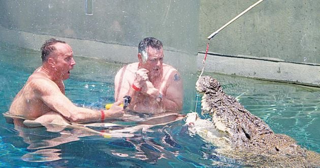 Μιλώντας για την εμπειρία της μια Γερμανίδα τουρίστρια, η Νέλι Γουίντερς, δήλωσε: «Είναι φοβερό… Δεν περίμενα ότι θα ήταν τόσο τρομερό, γιατί ο κροκόδειλος είναι τεράστιος και είσαι δίπλα του». Ο κροκόδειλος Saltwater, που είναι ο μεγαλύτερος στο είδος του, μπορεί να φτάσει τα έξι μέτρα και τα δόντια του να ξεπεράσουν τα 10 εκατοστά. Θεωρείται ένα από τα πιο επικίνδυνα είδη για τον άνθρωπο. Η Crocosaurus Cove που διαχειρίζεται την ατραξιόν από το 2011 διαθέτει επτά τέτοιους κροκοδείλους, συμπεριλαμβανομένου ενός ζεύγους, ονόματι Γουίλιαμ και Κέιτ.