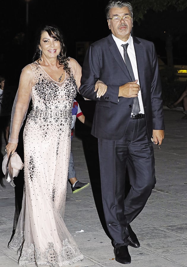 Λίγο πριν, στην εκκλησία είχε φτάσει και η εντυπωσιακή μέσα στην υπέροχη τουαλέτα της Αντζελα Δημητρίου, συνοδευόμενη από τον πατέρα του γαμπρού Μενέλαο Λώση.