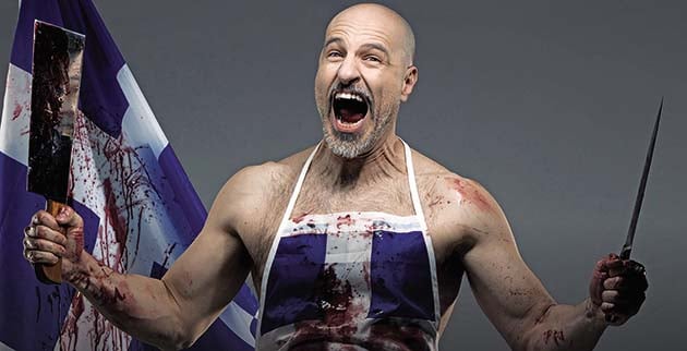 Ο Σίλας Σεραφείμ βρήκε αρμόζουσα ημερομηνία τις παραμονές της 28ης Οκτωβρίου, για να ενημερώσει τα μέσα για τα «μαθήματα» Ιστορίας που θα παραδίδει από την Παρασκευή 3 Νοεμβρίου στο Μικρό Παλλάς. Ο stand up comedian, για τις ανάγκες της παράστασής του με τίτλο «Η Ιστορία του ελληνικού έθνους – αλλιώς», φωτογραφήθηκε με μια ματωμένη ελληνική σημαία για ποδιά, έναν μπαλτά και ένα μαχαίρι στα χέρια.