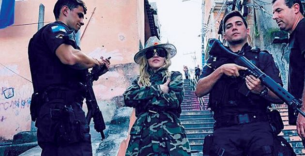❱❱ Είναι αυθεντία στο παιχνίδι της πρόκλησης η Μαντόνα μεν, αλλά αυτή τη φορά κατάφερε να ξεσηκώσει αντιδράσεις όχι με τη γύμνια της, αλλά με τη σκηνοθεσία της λήψης με φόντο τις φαβέλες του Ρίο. Ντυμένη με φόρμα παραλλαγής και συνοδευόμενη από ένοπλους αστυνομικούς, η «βασίλισσα της ποπ» πόζαρε στους δρόμους της παραγκούπολης Ροσίνια του Ρίο ντε Τζανέιρο.