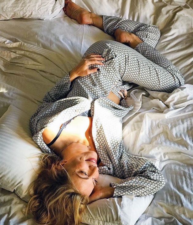 Αλλά και με το μαύρο δαντελένιο body και τις boyfriend πιτζάμες δεν έχει τίποτα να ζηλέψει από τις επαγγελματίες μοντέλα.