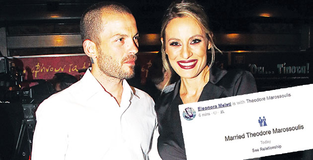 ❱❱ Ανακοίνωσε μέσω facebook, αλλάζοντας το προσωπικό status, ότι είναι πλέον παντρεμένη με τον Θοδωρή Μαροσούλη! Η Ελεονώρα Μελέτη ανακοίνωσε τον γάμο της μέσω facebook. Αλλάζοντας το προσωπικό status στο προφίλ της, η γνωστή παρουσιάστρια δήλωσε, από ελεύθερη που ήταν, παντρεμένη πλέον με τον Θοδωρή Μαροσούλη! Αυτό και τίποτε άλλο. Είναι, άλλωστε, γνωστή η τακτική της να κρατάει την προσωπική της ζωή μακριά από τα φώτα της δημοσιότητας.