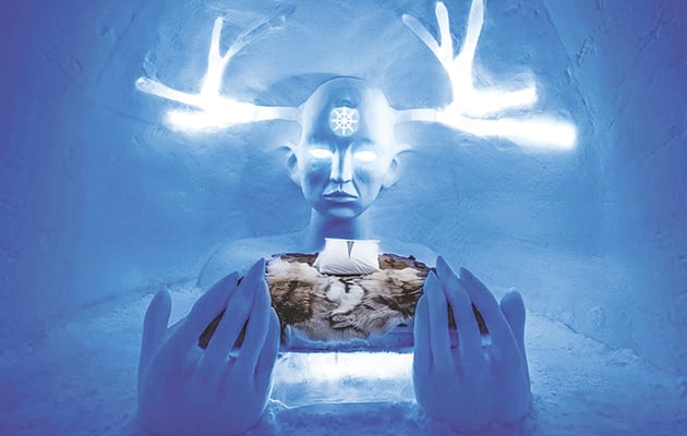 Πρόκειται για το «IceHotel», το οποίο κατασκευάζεται από πάγο κάθε χειμώνα από το 1989 και διαθέτει 35 χλιδάτες σουίτες, όπου κανείς μπορεί να κοιμηθεί στην… αγκαλιά του Κινγκ Κονγκ ή παρέα με παγωμένους αστροναύτες.