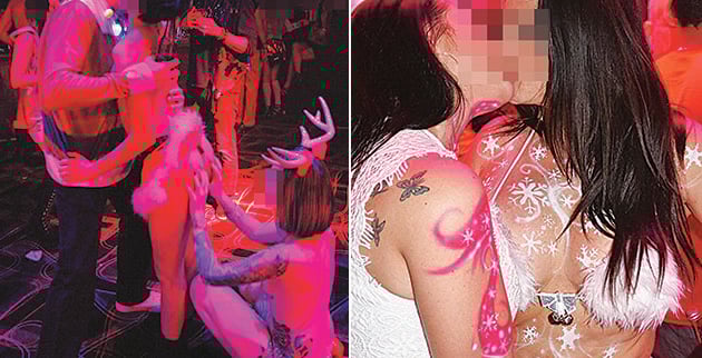 ❱❱ Οι βοηθοί του Αγιου Βασίλη μπορεί να μην έφεραν δώρα στο club Bliss του Μαϊάμι την παραμονή των Χριστουγέννων, αλλά έφεραν μπόλικη ηδονή στους λάτρεις των ομαδικών σεξουαλικών παιχνιδιών. Στο καθιερωμένο μηνιαίο party που διοργανώνει ο Nathan Bliss, ο οποίος έχει δώσει το όνομά του σε αυτό, το dress code ήταν άκρως εορταστικό για το σέξι guest list, που, αντί να πάρει θερμίδες από τα γλυκά, έκαψε θερμίδες με σεξ. Ο Bliss αρνείται ότι πρόκειται για πάρτι swingers, διευκρινίζοντας ότι διοργανώνει «ερωτικής θεματολογίας events για αμφιφυλόφιλες γυναίκες και περιπετειώδη ζευγάρια». Με άλλα λόγια, λέει κομψά ότι στα πάρτι του μπορεί να εκπληρώσει ένα ζευγάρι τη φαντασίωσή του να βάλει ακόμα μία γυναίκα στο κρεβάτι του.