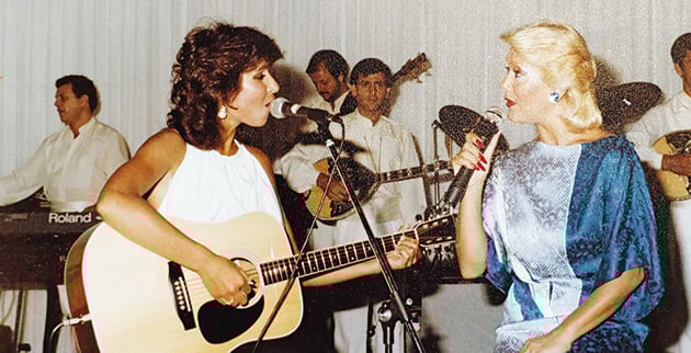 Τότε με το άλογο ήταν κάτι χιουμοριστικό που σκεφτήκαμε. Εβγαινα τραγουδώντας το κομμάτι μου «Θα φύγω με τους φίλους μου για Κάιρο» και ήμουν στο ίδιο σχήμα με τον Λευτέρη Πανταζή, τον Γιάννη Ζουγανέλη, τον Σάκη Μπουλά και τον Λάκη Παπαδόπουλο. Οσο για το παγοδρόμιο, έβγαινα και τραγουδούσα το «Don’ t cry for me Argentina» και στη συνέχεια χόρευα πάνω σε γόβες με καρφιά για να μην πέφτω. Τότε δουλεύαμε στα κέντρα έξι φορές την εβδομάδα και όχι δύο ή μία μέρα που δουλεύουμε σήμερα. Επίσης είχαμε πάρα πολύ κόσμο που ερχόταν να μας δει και να μας ακούσει, ο οποίος διασκέδαζε πραγματικά μέχρι τις πρώτες πρωινές ώρες. Χρυσές εποχές, θα έλεγα, της νυχτερινής Αθήνας!