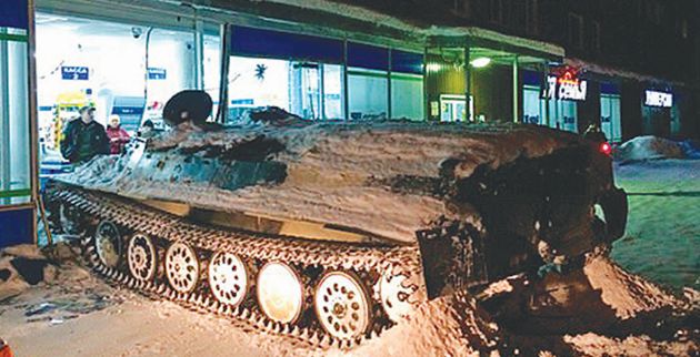 ❱❱ H ασυγκράτητη επιθυμία για αλκοόλ έκανε έναν Ρώσο να κλέψει θωρακισμένο όχημα και να ορμήσει με αυτό σε σούπερ μάρκετ της Κριμαίας. Στην τρελή πορεία του μέχρι το κατάστημα πήρε παραμάζωμα κι ένα αυτοκίνητο που ήταν παρκαρισμένο στον δρόμο της πόλης Μούρμανσκ.