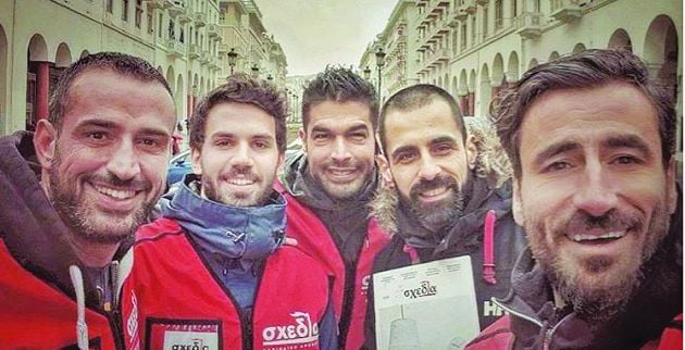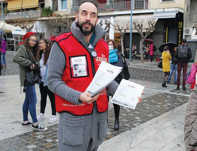 ❱❱ Οι Γιώργος Μαυρίδης, Γιώργος Κατσινόπουλος, Νίκος Αναδιώτης και η… Μόλυ (το χαριτωμένο λαμπραντόρ) έγιναν πωλητές του περιοδικού «Σχεδία» στη Θεσσαλονίκη! Με άλλα λόγια, οι κολλητοί του «Nomads» φόρεσαν το μεσημέρι του Σαββάτου και για μία ώρα το χαρακτηριστικό κόκκινο γιλέκο με τα διακριτικά του περιοδικού «Σχεδία» και, παρά τη βροχή, ξεχύθηκαν στους δρόμους της συμπρωτεύουσας για να το πουλήσουν στους περαστικούς.