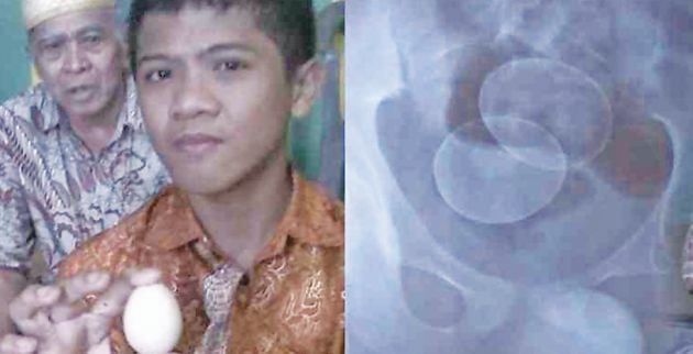 ❱❱ Τον γύρο του πλανήτη έκανε η είδηση ότι 14χρονος στην Ινδονησία «γέννησε» δύο αβγά, υποστηρίζοντας μάλιστα ότι τα τελευταία δύο χρόνια έχει «γεννήσει» συνολικά 20 αβγά. Την περασμένη Τρίτη ο Ακμάλ Ρουσλί από την επαρχία Σουλαέσι Σελατάν, όπως ανέφερε ο πατέρας του στην τοπική ιστοσελίδα DetikHealth, διακομίστηκε σε νοσοκομείο του Καμπουπάτεν Γκόουα με πόνους στην κοιλιά. Κάνοντας ακτινογραφίες οι γιατροί ανακάλυψαν ότι στο παχύ έντερό του υπήρχαν δύο πλήρως σχηματισμένα αβγά πουλερικών.