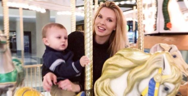 Η Χριστίνα Αλούπη με τον μπόμπιρά της στο καρουζέλ
