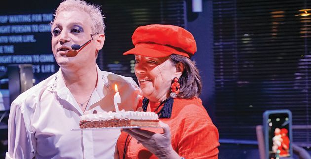 Η εορτάζουσα, ντυμένη στα κόκκινα, έσβησε το ένα και μοναδικό κεράκι -σε σχήμα ερωτηματικού-, ποζάροντας όλο περηφάνια δίπλα στον Διονύση Ζάχο, ο οποίος ετοιμάζει βαλίτσες για μια XL περιοδεία με το σατιρικό show «Κάνε κουράγιο Ελλάδα μου».