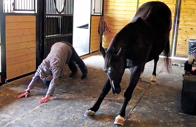 ❱❱ Η ευλυγισία αλλά και η εξυπνάδα του έχουν εντυπωσιάσει όλους τους χρήστες του διαδικτύου, καθώς μπορεί με απόλυτη άνεση να κάνει yoga. Μόνο που δεν πρόκειται για άνθρωπο αλλά για κατάμαυρο άλογο από την Καλιφόρνια.