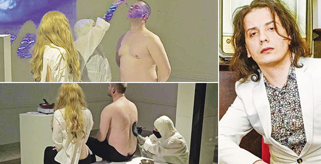 Για να περάσει το μήνυμα, στις 6 Μαρτίου διοργάνωσε εικαστικό δρώμενο σε μουσείο στη Ρίγα, στο οποίο συμμετείχαν ως εθελοντές ηθοποιοί όπως ο Καρλ Ζβέτζνιεκς και η Σούρα Νετλ. Στο βίντεο από το live streaming στο facebook ο Μπερζίνς εμφανιζόταν να κόβει κομμάτια σάρκας από την πλάτη δύο ατόμων χωρίς τη χρήση αναισθητικού. Ακολούθως έριχνε το κομμάτια κρέατος σε τηγάνι και αφού τα τηγάνιζε, τάιζε τους εθελοντές.