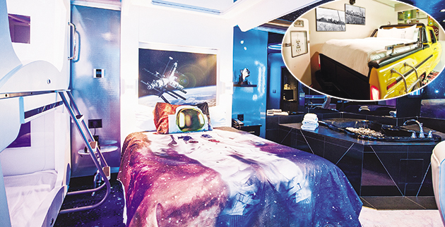 Εναλλακτικά μπορούν να ταξιδέψουν μέχρι τη μοντέρνα Πολυνησία και να κοιμηθούν σε δωμάτιο εμπνευσμένο από τη ζούγκλα της Πολυνησίας ή μέχρι την… Αφρική, μένοντας σε δωμάτιο του οποίου η διακόσμηση παραπέμπει στην έρημο. Αλλο δωμάτιο που μοιάζει με ιγκλού τούς μεταφέρει στον Βόρειο Πόλο.