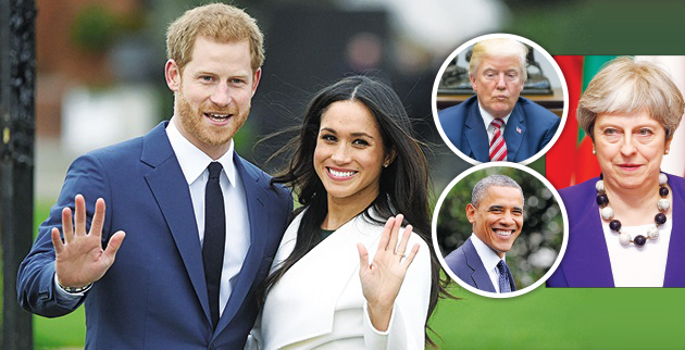❱❱ Μέι, Τραμπ και Ομπάμα απόντες στον γάμο του πρίγκιπα Χάρι με τη Μέγκαν ΜαρκλΟύτε τη Βρετανίδα πρωθυπουργό Τερέζα Μέι δεν κάλεσε στον γάμο του στις 19 Μαΐου ο πρίγκιπας Χάρι, καθώς αποφάσισε να μην προσκαλέσει κανέναν πολιτικό αρχηγό. Το «παρών» στην τελετή στο παρεκκλήσι του Αγίου Γεωργίου θα δώσουν περίπου 600 καλεσμένοι του 33χρονου πρίγκιπα και της Μέγκαν Μαρκλ, οι οποίοι προέρχονται αυστηρά από τον συγγενικό ή τον φιλικό κύκλο τους.