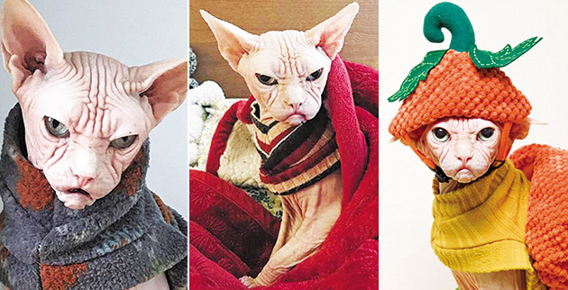 ❱❱ Ρυτιδιασμένος και τσατισμένος, διεκδικεί με αξιώσεις τον τίτλο της πιο άσχημης γάτας του κόσμου. Αυτό βέβαια δεν του στερεί σε δημοφιλία, καθώς ο Λόκι, όπως ονομάζεται η αρσενική γάτα σφίγγα από το Μπρούκλιν, διαθέτει 60.000 followers στο Instagram, χάρη προφανώς στο… ενδιαφέρον κοντράστ της μάλλον ανατριχιαστικής του έκφρασης με τα διάφορα εξτραβαγκάντ ρούχα και αξεσουάρ που του βάζουν οι ιδιοκτήτες του, η Σάρα και ο Μπρεντ.