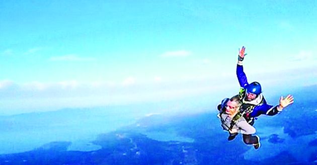 Το ζευγάρι γιόρτασε τα γενέθλια της ωραίας Ευγενίας κάνοντας sky diving, αφού αυτό ήταν και το δώρο που ζήτησε από τον γοητευτικό σύντροφό της. Φορώντας γκρι φόρμα, ο πρωταγωνιστής πόζαρε στην αγκαλιά έμπειρου εκπαιδευτή λίγες στιγμές πριν ανοίξει το αλεξίπτωτό τους, και με τη γη να απλώνεται κάτω του σαν… πιάτο! Μάλιστα, σχολίασε αργότερα: «Αντιμετώπισε τους φόβους σου».
