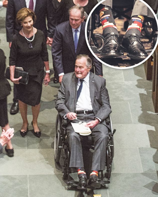 ❱❱ Με τον δικό του, ξεχωριστό τρόπο θέλησε να αποτίνει φόρο τιμής στη χρόνια σύζυγό του, Μπάρμπαρα, ο πρώην πρόεδρος των ΗΠΑ Τζορτζ Χ. Ου. Μπους, στη διάρκεια της κηδείας της στην Επισκοπική Εκκλησία Σεν Μάρτιν του Τέξας.Ο 93χρονος πρώην ηγέτης έφτασε στην τελετή φορώντας ένα ζευγάρι κάλτσες που απεικόνιζαν βιβλία, για να τιμήσει την αφοσίωσή της στην καταπολέμηση του αναλφαβητισμού, σκοπό για τον οποίο η πρώην πρώτη κυρία είχε συγκεντρώσει περισσότερα από 90.000.000 ευρώ.