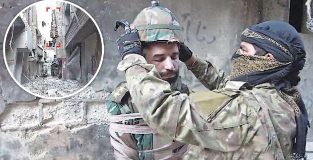 Οι τζιχαντιστές μετέτρεψαν έναν από τους αιχμαλώτους τους σε «ιπτάμενη βόμβα», τοποθετώντας ένα φιτίλι στο κράνος του και πετώντας τον από κτίριο, κοντά στη Δαμασκό της Συρίας.