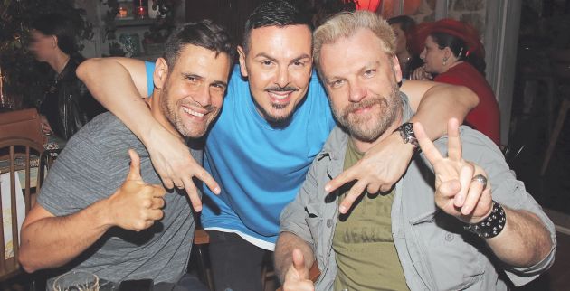 ❱❱ Οι Δημήτρης Ουγγαρέζος, Νίκος Βουρλιώτης και Κώστας Σπυρόπουλος ποζάρουν αγκαλιασμένοι στον φακό και ταυτόχρονα κάνουν τεστ οράσεως στον φωτογράφο: «Πόσα δάχτυλα βλέπεις;» Ο ένας σχηματίζει το σήμα της νίκης και με τα δύο χέρια, αφού… νίκησε πολύ! Ο άλλος κάνει το ίδιο με το ένα χέρι και like με το άλλο. Και ο τρίτος, πιο ψύχραιμος, περιορίζεται σε ένα απλό like με τον αντίχειρα. Πάλι καλά που δεν μούντζωσε κανείς!