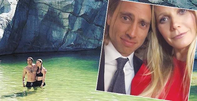 Σε μια από αυτές η Πάλτροου ποζάρει αγκαλιά με τον αγαπημένο της φορώντας μαύρο bikini top και σορτσάκι σε μια τοποθεσία που, όπως σχολιάζει εύστοχα στη λεζάντα, θυμίζει κάτι από την ταινία «Γαλάζια Λίμνη», ενώ σε άλλη πηδάει γεμάτη χαρά στην παραλία με φόντο τη θάλασσα.