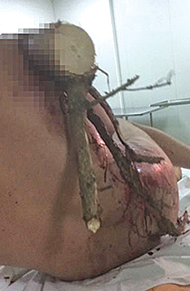 Ο 36χρονος Ιβάν Κρασούσκι μεταφέρθηκε με το κλαδί που ήταν καρφωμένο στην ωμοπλάτη στο νοσοκομείο, όπου υποβλήθηκε σε επέμβαση για να του αφαιρεθεί.